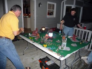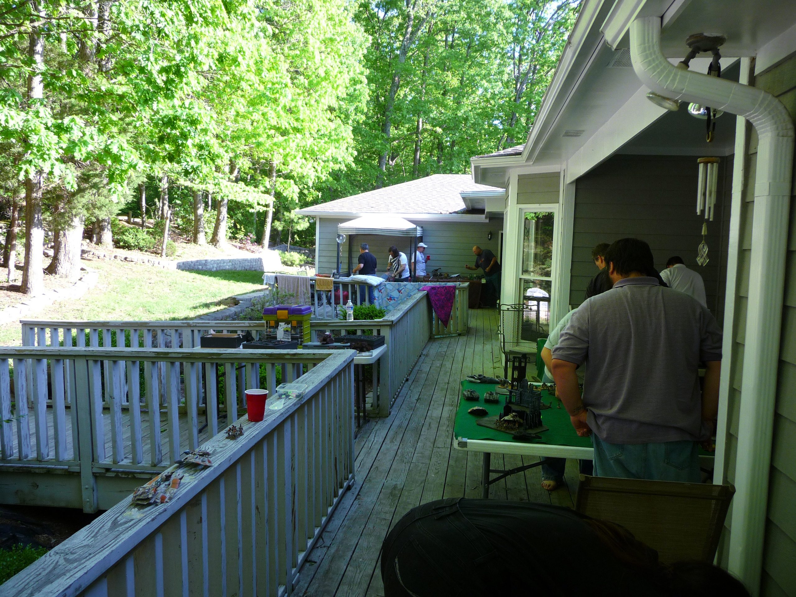 We arrived with supplies and are immediately handed a glass of something punchy with alcohol and introduced to about 20 people, who we proceed to play 40K, drink, eat, and be merry with for the next 3 days without electricity. Well, mostly. One of the attendees drove in from New Orleans, who had previously survived being smashed by Hurricane Katrina. They brought a generator, gas, and a couple of gallons of jambalaya, gumbo, and crawfish for a boil. The generator was only used to run the coffee maker in the morning.