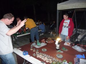 Thus was spored of The Kalm Before the Waaagh! A tournament of underground legend that drew people from all 4 corners of da USA to play (what has now become known as Barhammer) in the southern state of Alabama. Here, warlords, generals, and commanders of all stripes, colors, and races could come together, eat, drink, and be merry over a table of toy soldiers as they attempted to smash their opponents heads in.